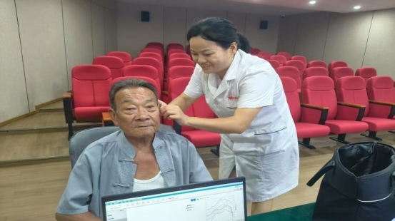 然而,当邹火登戴上调试好的助听器,周围的声音清晰地传入耳中时,他的脸上浮现出久违的笑容。“听到了,听到了!”他激动地重复着,随即扭头对身旁的老伴轻声“抱怨”道:“老婆子你小声点,你的声音太大了!”一句看似平常的调侃,却引得在场众人会心一笑。这一刻,声音不再是他与世界之间的屏障,而是重新连接亲情的桥梁。